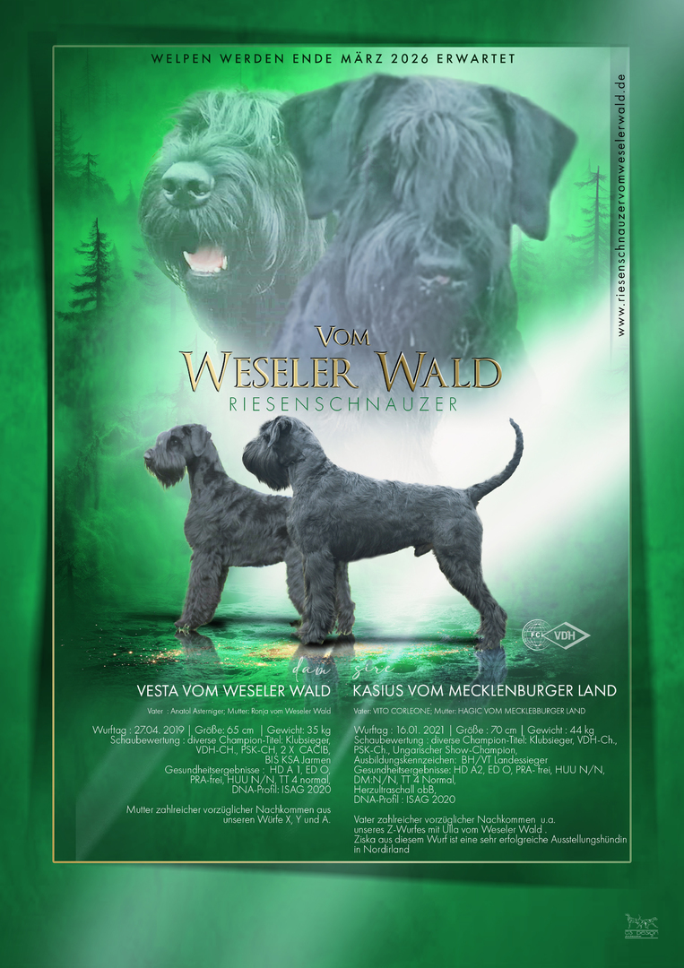 Since 1986 we are breeding , based on international bloodlines, "vom Weseler Wald" giant schnauzers for families, sports, customs and police .